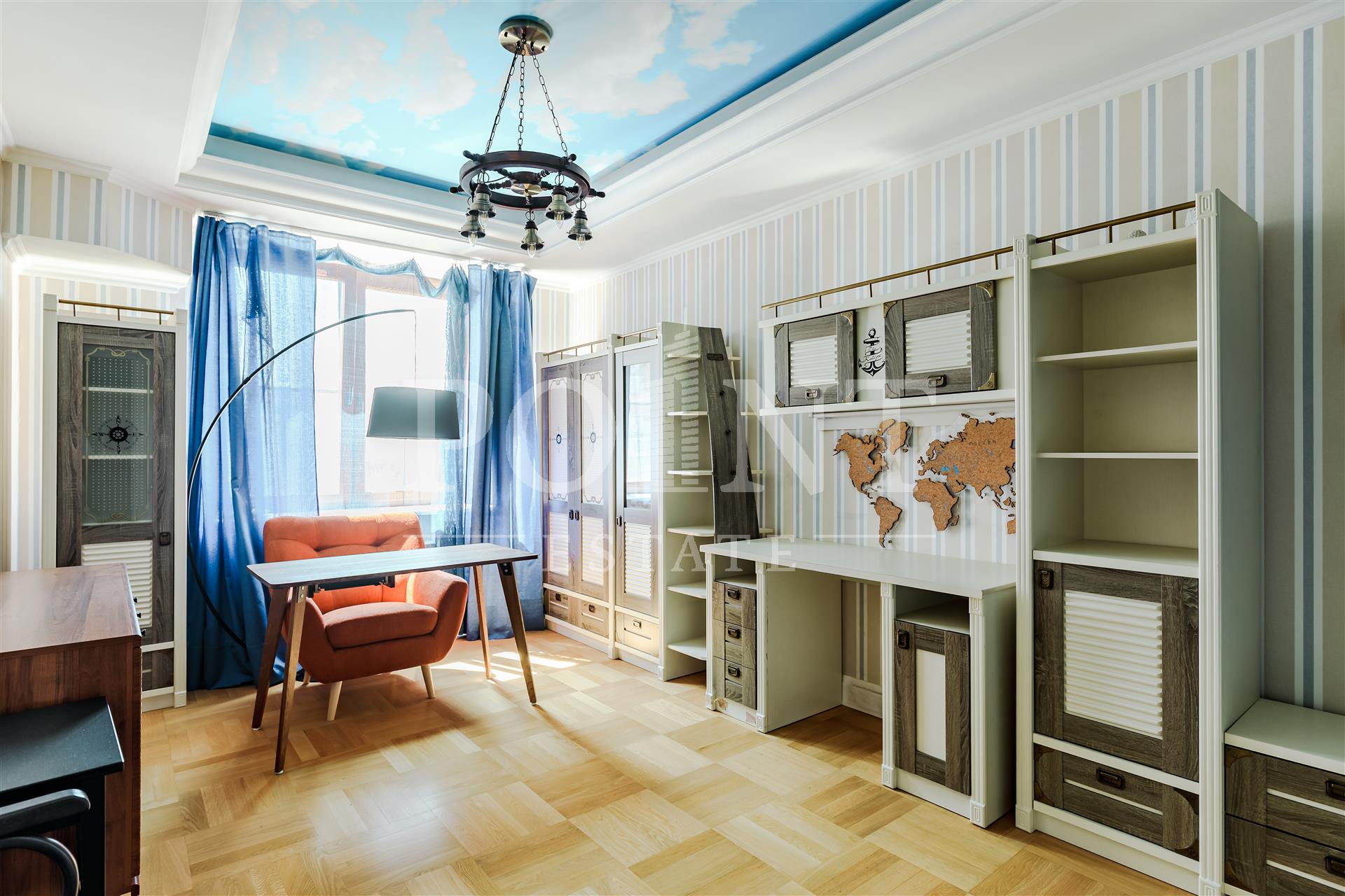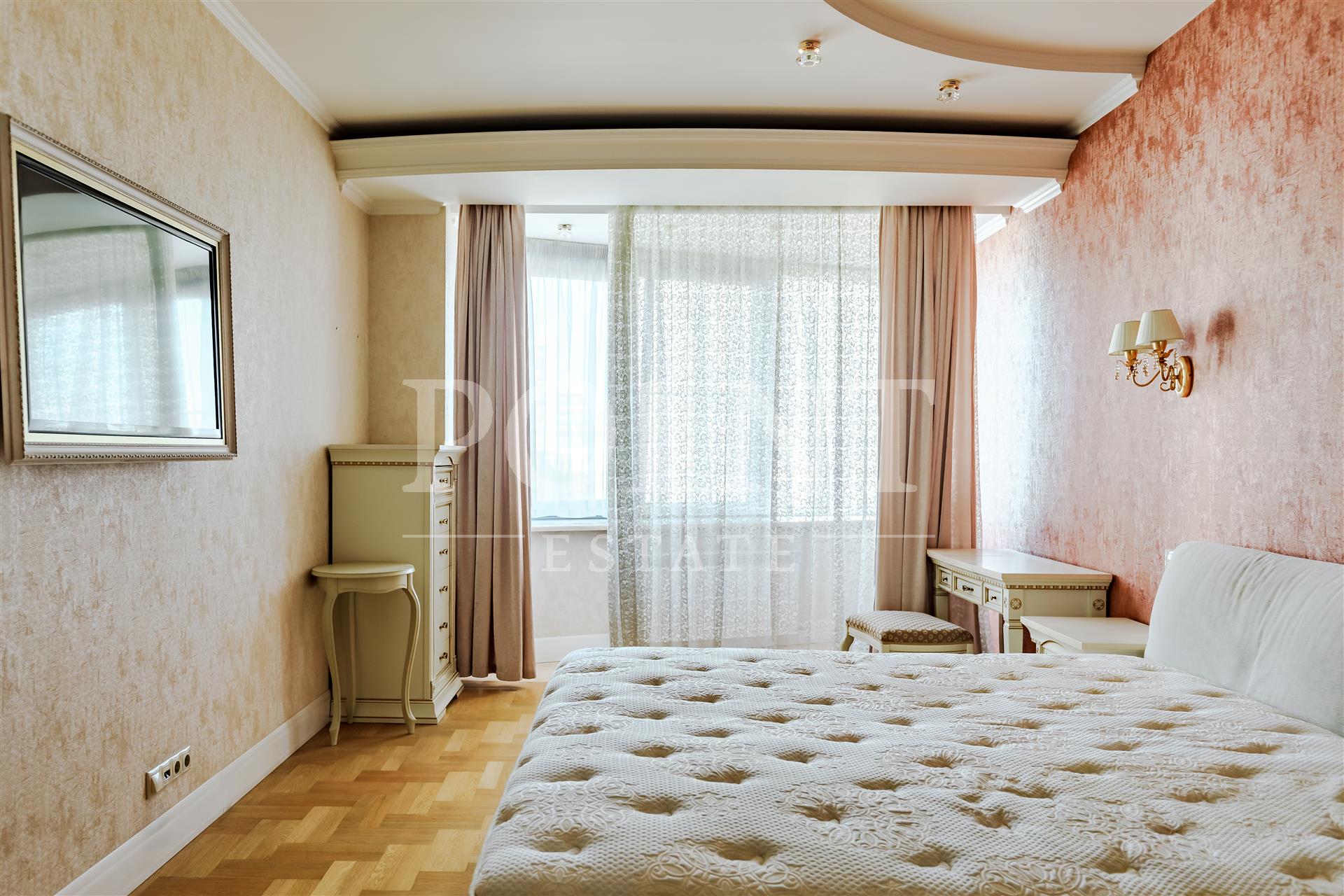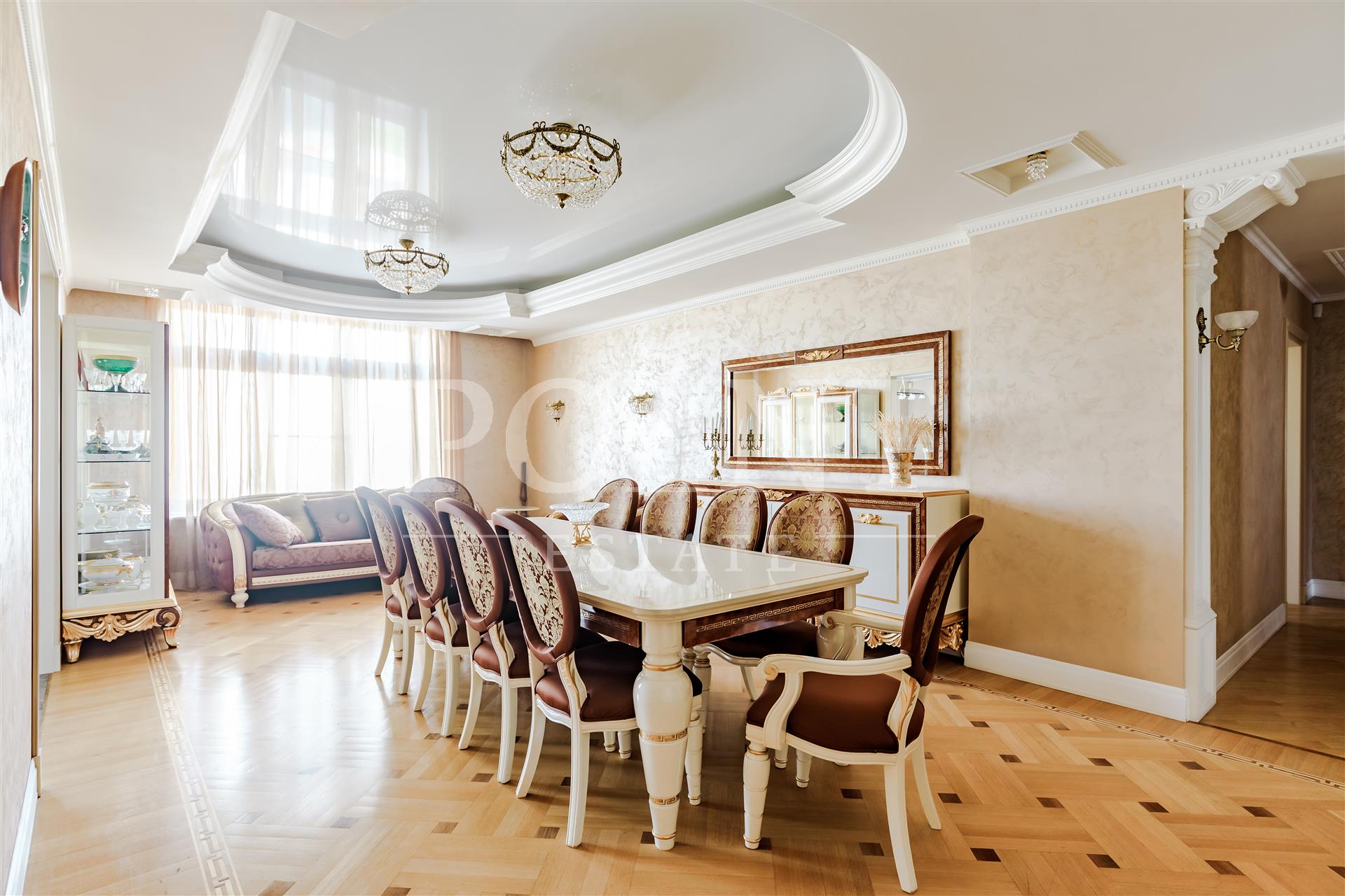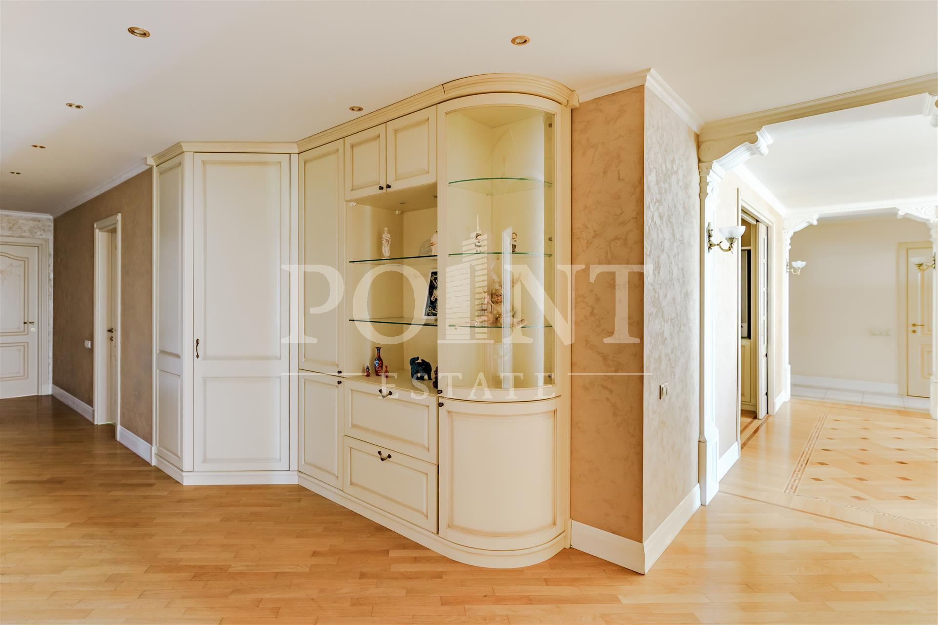 На продажу предлагается шестикомнатная квартира, площадью 236.8 кв.м., в ЖК "Корона Эйр". Планировка: гостиная, кухня-столовая, домашний кинотеатр, четыре спальни, одна из которых со своей гардеробной и санузлом, две гардеробные, два совмещенных санузла, постирочная, кладовая, прихожая. Высота потолков - 3,05 м. Из окон открываются живописные и красивые виды. Квартира полностью меблирована, в наличии вся необходимая бытовая техника от ведущих мировых производителей. Мебель и плитка от Версаче, в санузлах установлена качественная сантехника. Квартира оборудована приточно-вытяжной вентиляцией и системой кондиционирования. Закрытая и охраняемая территория. Видеонаблюдение. Гостевой паркинг. Два семейных машиноместа (38,4 кв.м.) в подземном паркинге по запросу. Удобная транспортная доступность и развитая инфраструктура района.