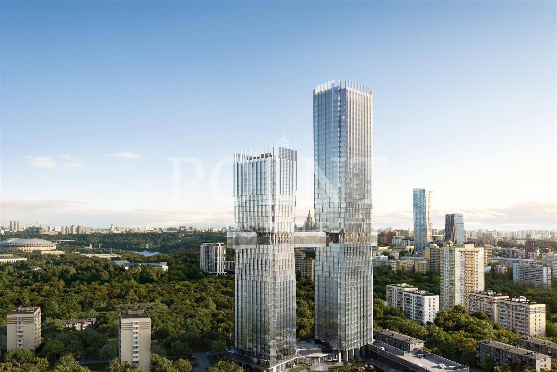"HideOUT" - это две высотные башни в 34 и 49 этажей с уникальной архитектурной концепцией. Фасады с панорамным остеклением выглядят эффектно и современно, угловые окна придают зданиям динамичный вид. Архитектурной доминантой проекта станет мост на 22 этаже, соединяющий небоскребы между собой. Здесь расположатся уникальные форматы «парящих» квартир с видовыми террасами и окнами на 3 стороны света, а также двухуровневые пентхаусы с приватными патио.