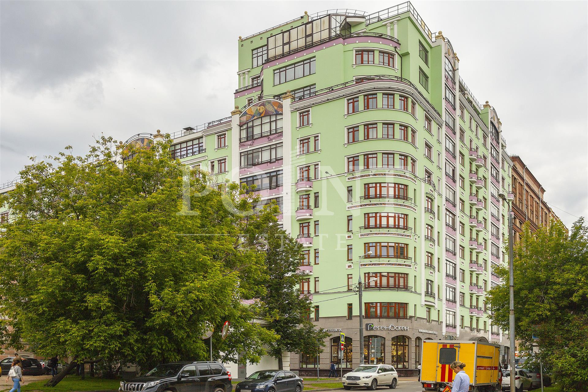 Район выгодно отличается близостью к историческому центру столицы - к Кремлю, Третьяковской галерее, набережным Водоотводного канала Москвы-рекии. 12-этажное здание доминирует над окружающей застройкой по высоте и выделяется дизайнерской отделкой - нежно-оливковые фасады украшены мозаичными панно. Из видовых квартир открываются картины Замоскворечья - набережные, старинные переулки, церковь Святого Климента в стиле французского барокко.