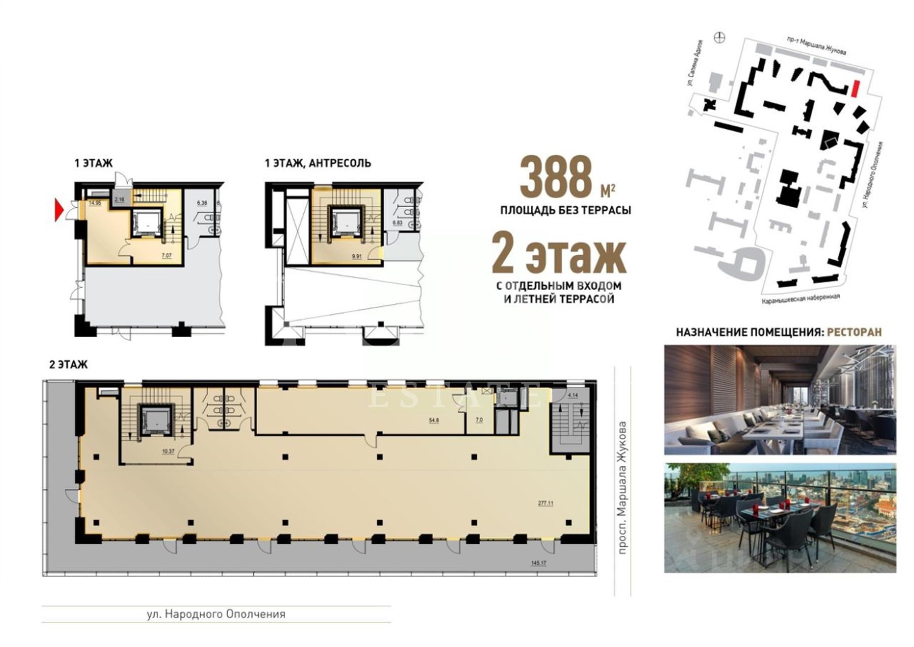 В аренду предлагается помещение свободного назначения в новом комьюнити-центре "WELLTON CLUB", который станет центром притяжения жилого квартала "Wellton Park" и района в целом. Общая площадь помещения - 984кв.м., состоит из 2-х соседних блоков: 388 кв.м. и 596 кв.м. Помещение располагается в 3-х уровнях. Организовано 5 отдельных входных групп. Со второго этажа есть выход на большую террасу, которая идет БОНУСОМ! Высота потолков - 3,95 метра, Электрическая мощность - по запросу. В помещении будут проведены мокрые точки, технологическая вентиляция под кухню полного цикла, центральное кондиционирование. Возможна реклама а фасаде здания и в пределах квартала. Помещение передается в состоянии shell&core, предоставляются арендные каникулы на ремонт. В арендную ставку включен НДС, операционные расходы не включены. Помещение идеально подойдет под размещение ресторана, но можно и под любой другой вид деятельности. Перед зданием будет организована наземная парковка на 20 машин. Планируемый ввод в эксплуатацию в конце 2024 г. С появлением этого объекта на территории квартала окончательно сформируется рекреационное городское пространство для социального взаимодействия жителей, которое уже включает в себя Арт-аллею вдоль небоскребов Wellton Towers, ледовый каток и квартальную гостиную, а также sky-парк. Расположение квартала безупречно с точки зрения транспортной доступности, до станции метро "Народное ополчение" пешком 8 минут. Высокий автомобильный и пешеходный трафик. Население квартала составляет более 15 000 жителей.