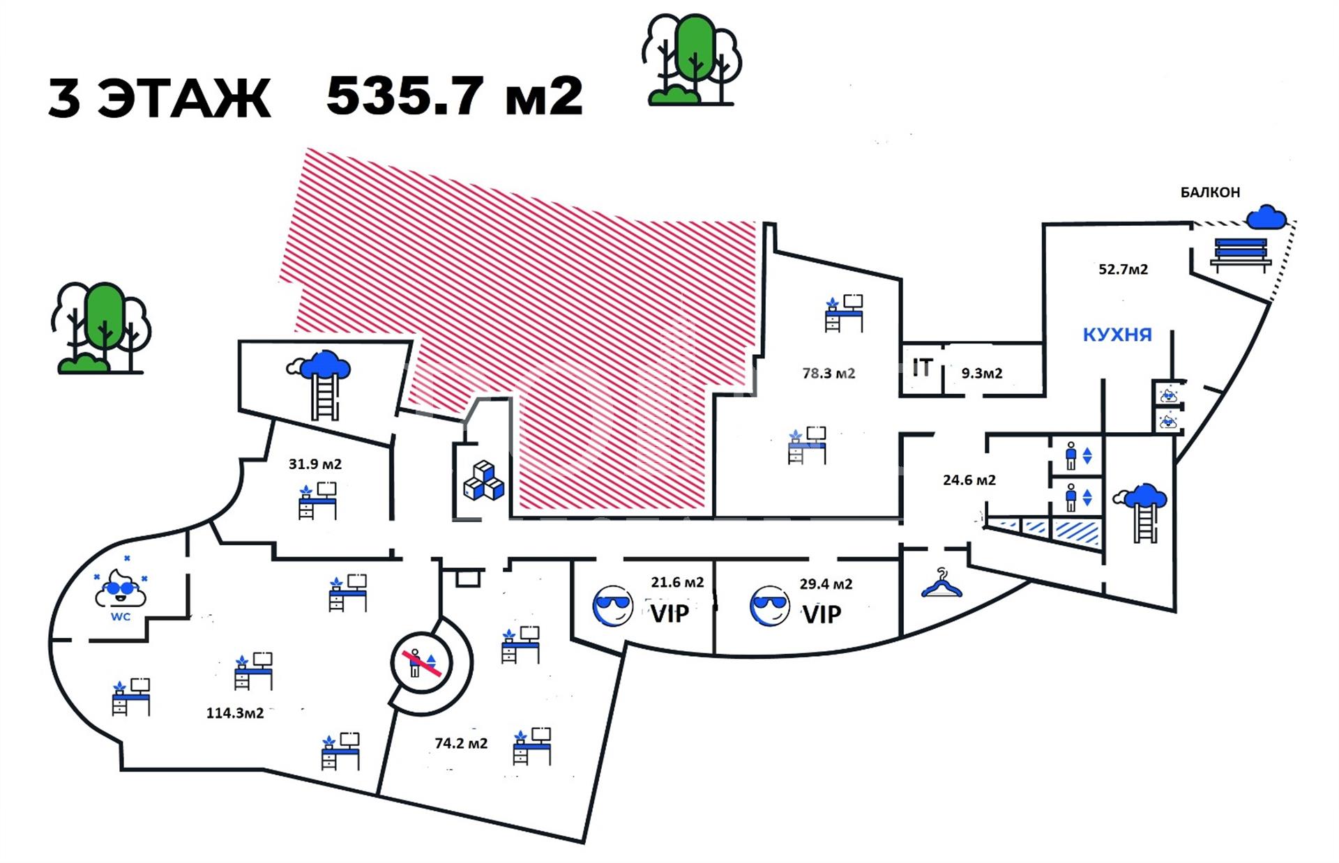 Офис с собственной эксплуатируемой террасой в бизнес-центре "Кутузовъ Холл". Общая площадь - 536 кв.м., 3 этаж целиком. Приоритетно кабинетная планировка, качественный ремонт. По фасаду идет витринное остекление. На этаж организованы лифтовые холлы. На блок предоставляются 3 м/м (бесплатно), можно арендовать дополнительно, ставка аренды - 10 000 руб/мес. На территории бизнес-центра действует пропускной режим. Развитая инфраструктура: на 1-м этаже имеются несколько ресторанов, банкоматы и кафе. На территории наземной парковки установлен шлагбаум. В пешей доступности расположен Мосфильмовский пруд. От метро "Минская" пешая доступность 7-9 минут.