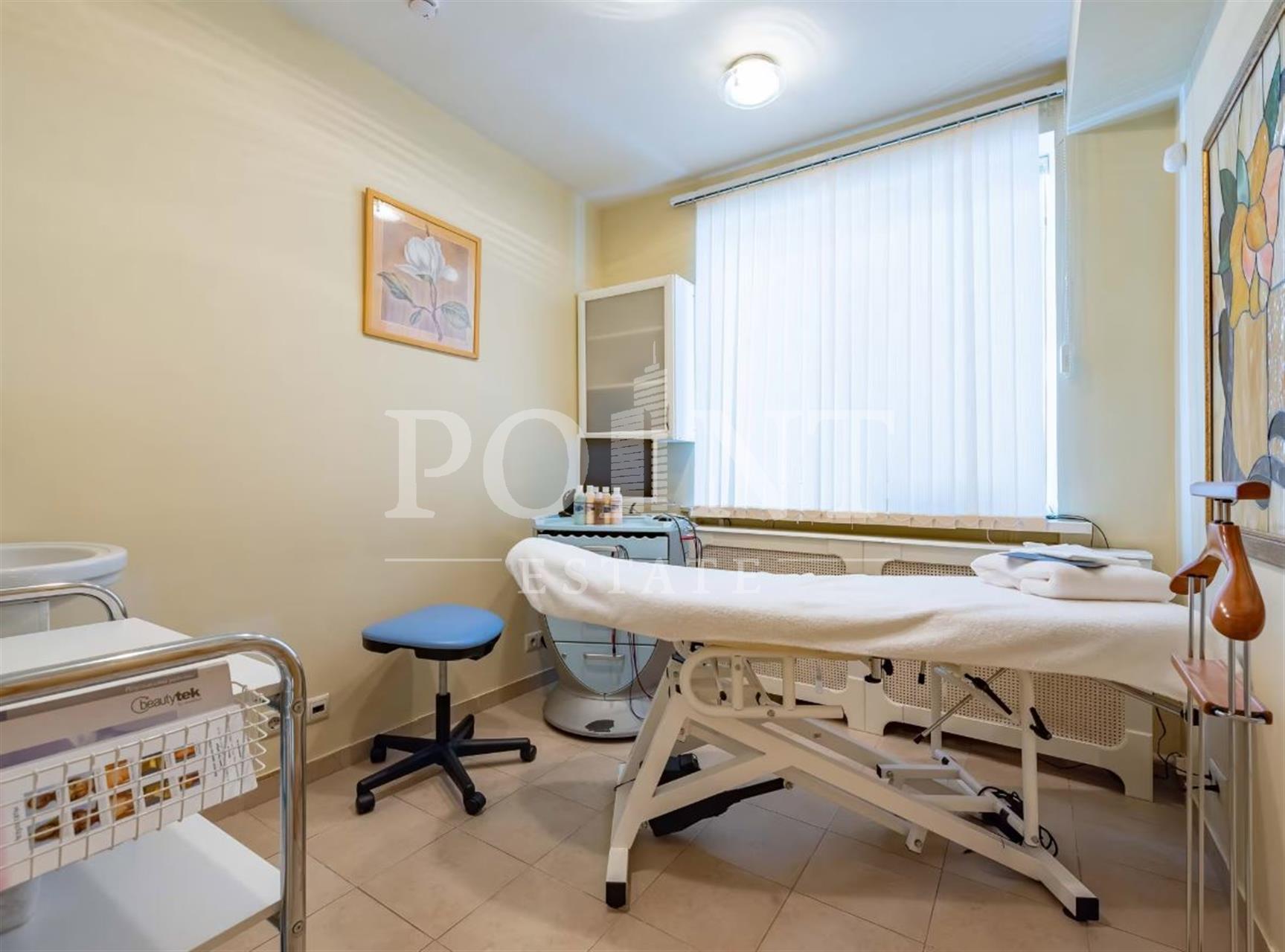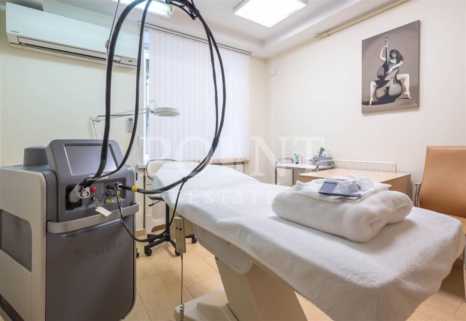 Помещение расположено на 2-х этажах. Общая площадь 628,9 кв.м., из них: 1 этаж 341 кв.м., цокольный этаж - 287,9 кв.м. Два отдельных входа: центральный вход с Троилинского переулка, запасной выход с дворовой территории. Имеется внутренний транспортный лифт (подъемник). Установленная мощность - 40 кВт (возможно увеличение). Высота потолков 3 метра. Помещение может использоваться как медицинская клиника, разного профиля, в настоящее время находится в аренде у юридического лица: действующая клиника медицинской косметологии с лицензией на мед. деятельность. Помещение может быть переоборудовано для любого иного вида деятельности. Помещение оборудовано действующей охранно-пожарной сигнализацией и действующей системой пожаротушения. Доступность от станции метро "Смоленская" (Арбатско-покровской линии) 80 метров.