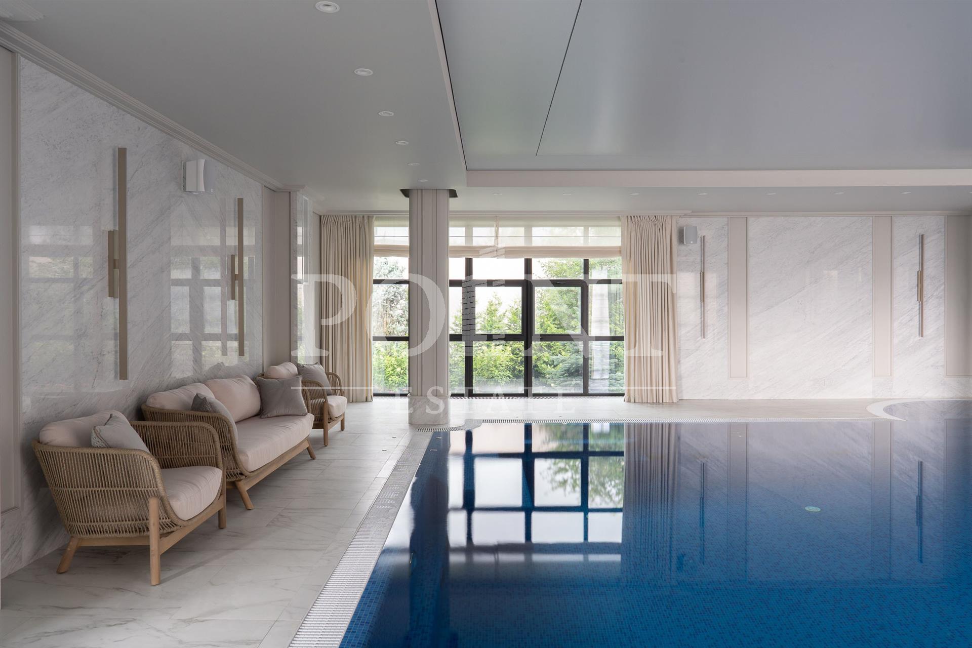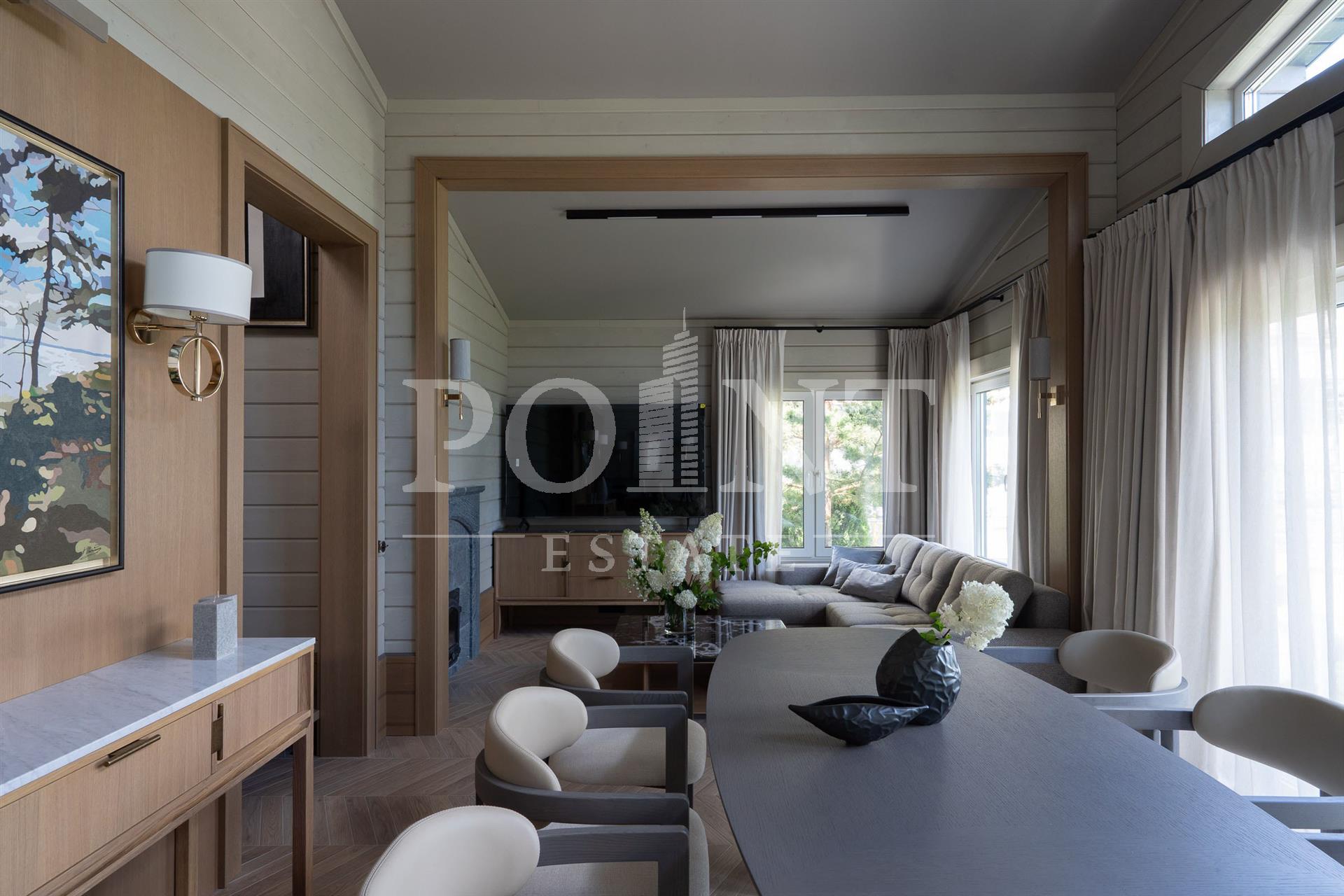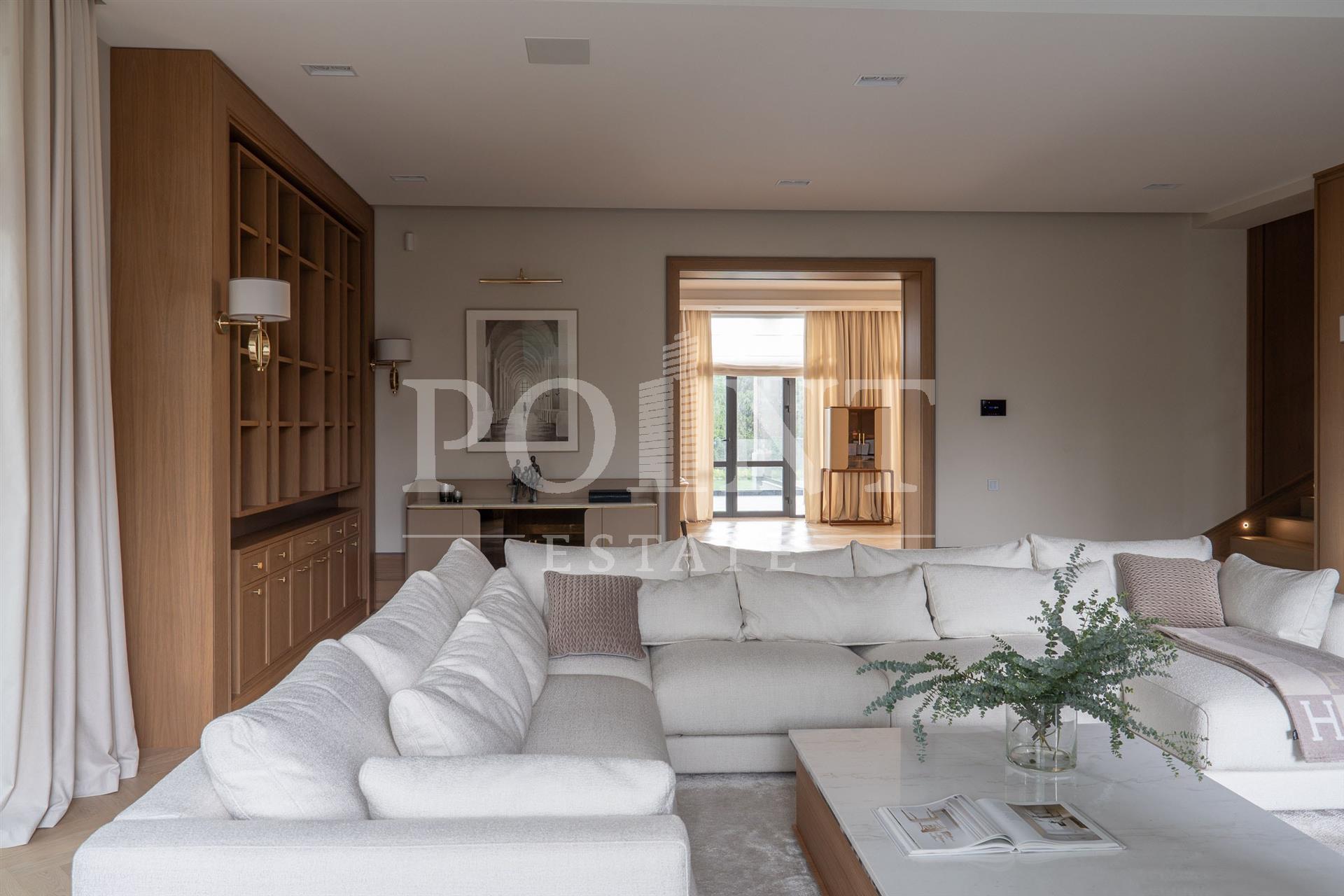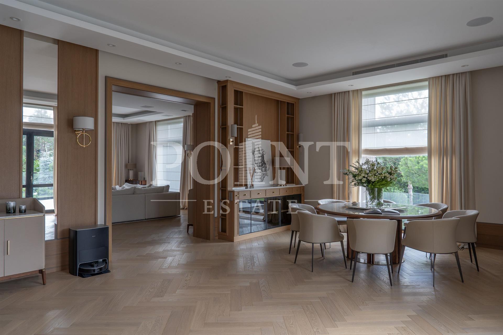 Представлен вашему вниманию элегантный новый дом площадью 744 кв.м. Его расположение уникально: участок примыкает к двум каналам, имея собственный приватный выход с участка. Архитектура и интерьер дома отражают современные тенденции, сохраняя атмосферу уюта и респектабельности - спокойная цветовая палитра, изысканные детали и натуральные материалы создают гармоничное пространство для жизни. На участке 28,99 сот. выполнен ландшафтный дизайн, высажены газон и крупномеры, а также большое количество различных кустарников и деревьев. На участке есть отдельностоящие баня 130 кв.м, детский игровой домик и зона отдыха с камином. В шаговой доступности находится вся необходимая инфраструктура: Estate Mall, Crocus Fitness, Даниловский рынок, теннисный центр Jet Arena, Ломоносовская гимназия, школы, детские сады и больница в Павловской Слободе - всё для комфортной загородной жизни.