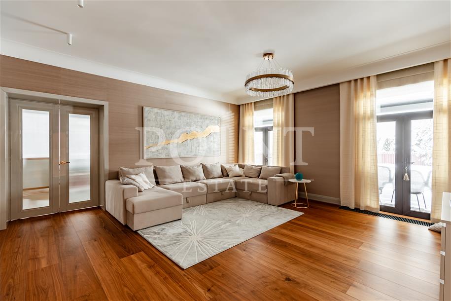 Классический двухэтажный дом площадью 1000 кв.м под ключ с цокольным уровнем и мансардой, построенный на участке 17 соток с ландшафтным дизайном в экологически чистом районе Подмосковья с прекрасными пейзажами. Функциональная планировка. На первом уровне (цоколь) находится тренажерный зал, хамам, винная комната, гостевой санузел, комната отдыха, массажный кабинет, санузел, гардеробная, постирочная, техническое помещение, помещение свободного назначения. Второй уровень занимает гостиная с камином, кухня, столовая, гостевой санузел, гардеробная, большой холл, блок для персонала. Третий уровень вместил кабинет, две спальни с гардеробными и санузлами, бассейн, гардеробную, санузел, большой холл, комнату отдыха и балкон. Четвертый уровень (мансарда) отведен под три спальни и санузлами. В ближайшей доступности предусмотрена вся необходимая инфраструктура.