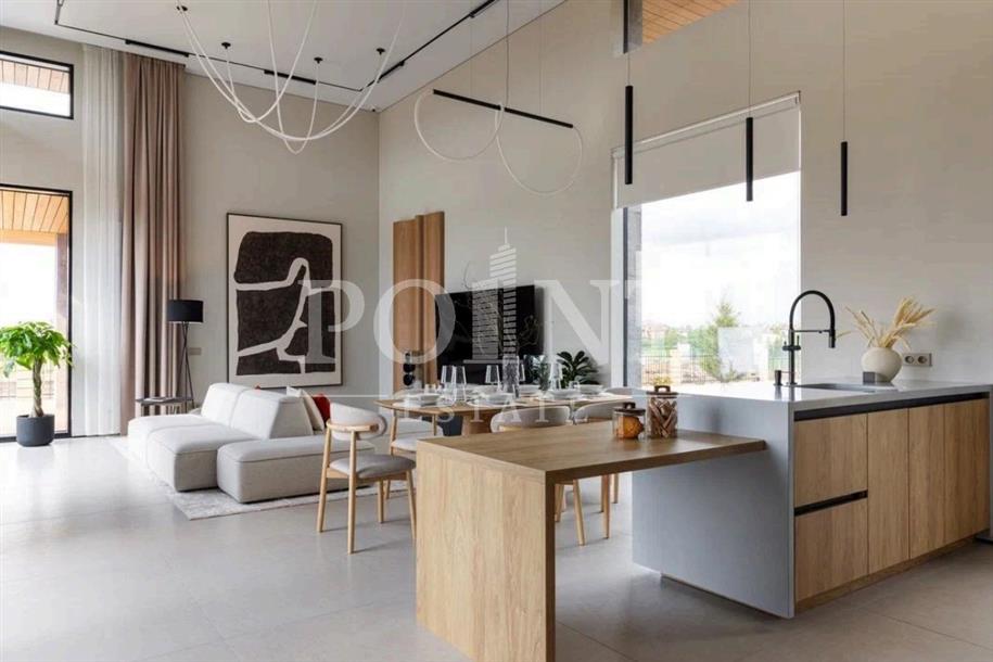 Загородный таунхаус в три уровня площадью 400 кв.м под ключ без мебели располагается на участке 3 сотки в престижном коттеджном поселке "Флоранс" в непосредственной близости от столицы. Функциональная планировка. На первом уровне находится гостиная, кухня, столовая, гостевой санузел, холл, котельная, прихожая. Второй уровень занимают две спальни с индивидуальными гардеробными и санузлами, холл. Третий уровень отведен под еще одну спальню с гардеробной и санузлом, холл. Предусмотрен встроенный гараж для одного автомобиля. "Флоранс" - это живописные окрестности, удобные подъездные пути и продуманная до мелочей инфраструктура, для которой предусмотрены обширные общественные зоны общей площадью до 4 гектаров.
